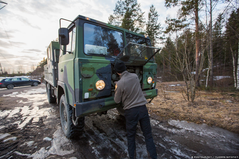That’s what Patrik did. I joined him as shotgun and travelled among the narrow and curly roads of Middle and Eastern Uusimaa. The vehicle in question is a tad different from the classic definition of car, though, as it is in fact a goddamn army truck.